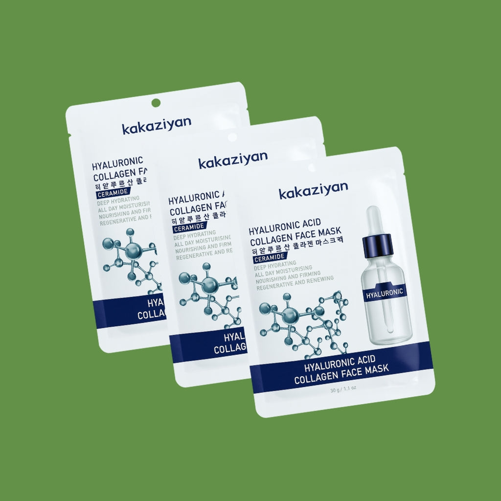 Nourish your skin with Kakaziyan's Hyaluronic Acid Collagen Face Mask, infused with Ceramide to deeply hydrate and firm your complexion. This regenerative mask provides all-day moisturizing, leaving your skin refreshed and renewed. Simply apply, relax, and reveal a smoother, more radiant you!