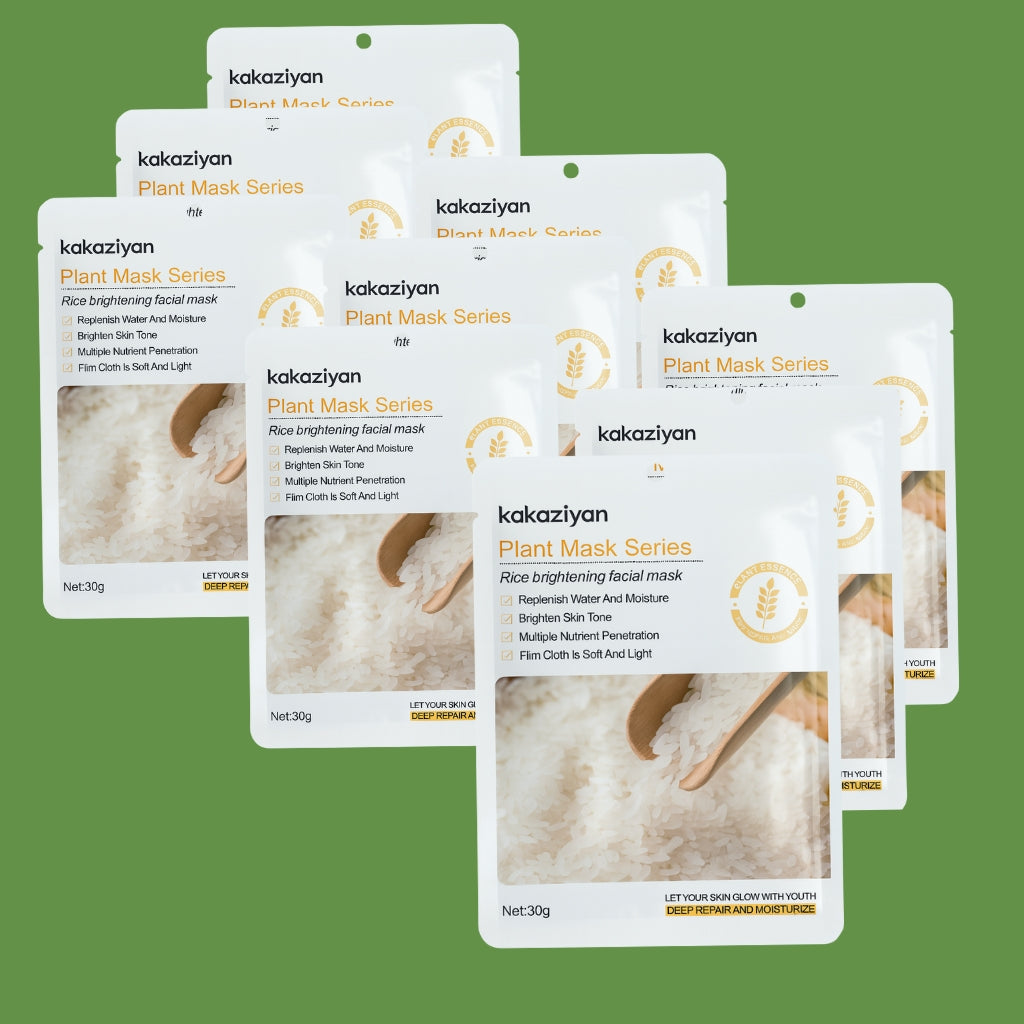 Revitalize your skin with Kakaziyan's Rice Brightening Facial Mask, infused with rice extract to replenish moisture, brighten skin tone, and provide multiple nutrient penetration. Simply apply the soft and lightweight mask to your face, relax for 15-20 minutes, and reveal a radiant glow. With regular use, this mask helps to deep repair and moisturize your skin, leaving it soft, smooth, and luminous.
